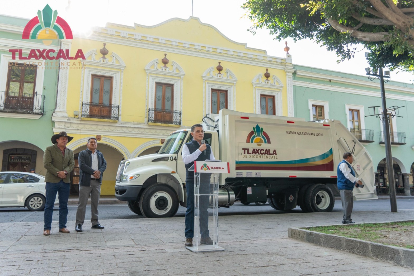 •“Tenemos el objetivo de que Tlaxcala sea una de las ciudades más limpias del país”, destacó el alcalde al hacer entrega de la unidad compactadora que llega a reforzar las labores de recolección en el municipio