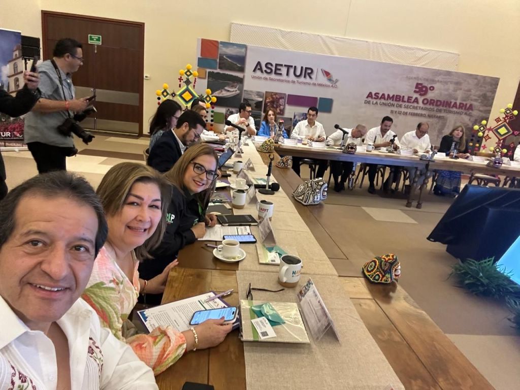 El titular de Turismo del Estado de Tlaxcala (Secture), Fabricio Mena Rodríguez, participó en la 59 Asamblea Ordinaria de la Unión de Secretarios de Turismo de México (ASETUR), celebrada en Nayarit, donde señaló que este tipo de eventos fortalecen la promoción de la entidad, lo que, a su vez, propicia un impulso en la economía local, a través de la innovación.