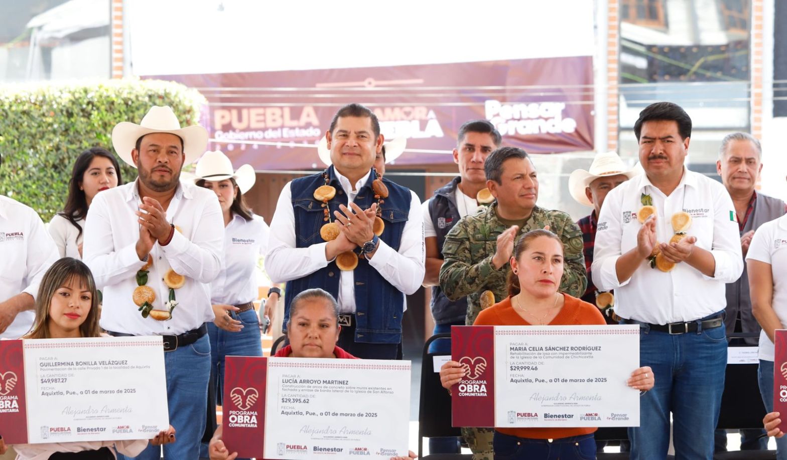 AQUIXTLA, Pue .- Con la presidenta Claudia Sheinbaum el poder se puso al servicio del pueblo, por ello en el Gobierno del Estado vamos a distribuir la riqueza y trabajaremos con las micro, pequeñas y medianas empresas para generar desarrollo, aseguró el gobernador Alejandro Armenta al entregar apoyos para el Programa de Obra Comunitaria.