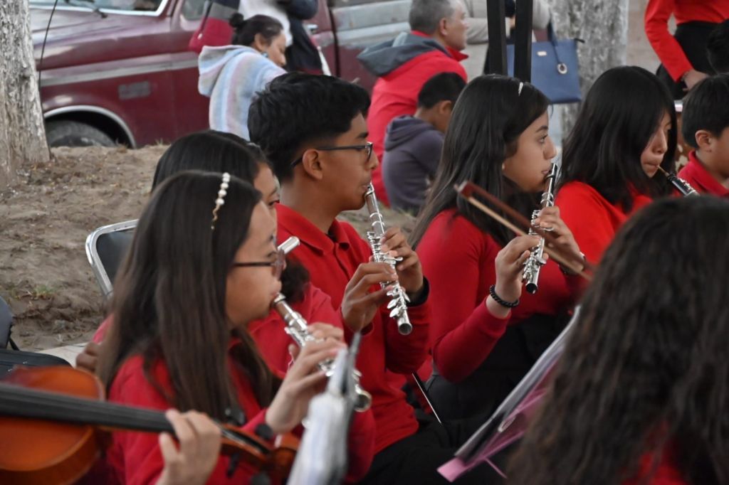 La música de la Orquesta Sinfónica Infantil y Juvenil de Huamantla, cuya presentación gestionó el Gobierno Municipal, envolvió la tibia tarde.