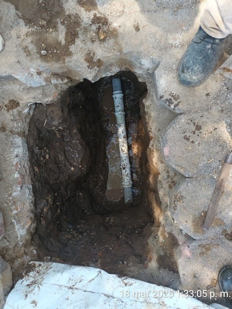 Personal de la CAPAM realizó una inspección en la red de distribución e identificó que una raíz había alterado la forma de un tubo, afectando el flujo normal del agua hacia las viviendas de la zona. Una vez detectada la causa, se procedió a la reparación correspondiente, restableciendo el suministro con la presión adecuada.