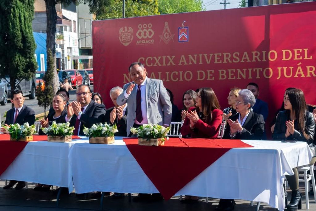 El H. Ayuntamiento de Apizaco y la Logia Masónica Valentín Gómez Farías 86 N°225, jurisdiccionada a la Muy Respetable Gran Logia «Valle de México», tuvimos el honor de rendir homenaje a uno de los más grandes líderes de la historia de México, Benito Juárez.