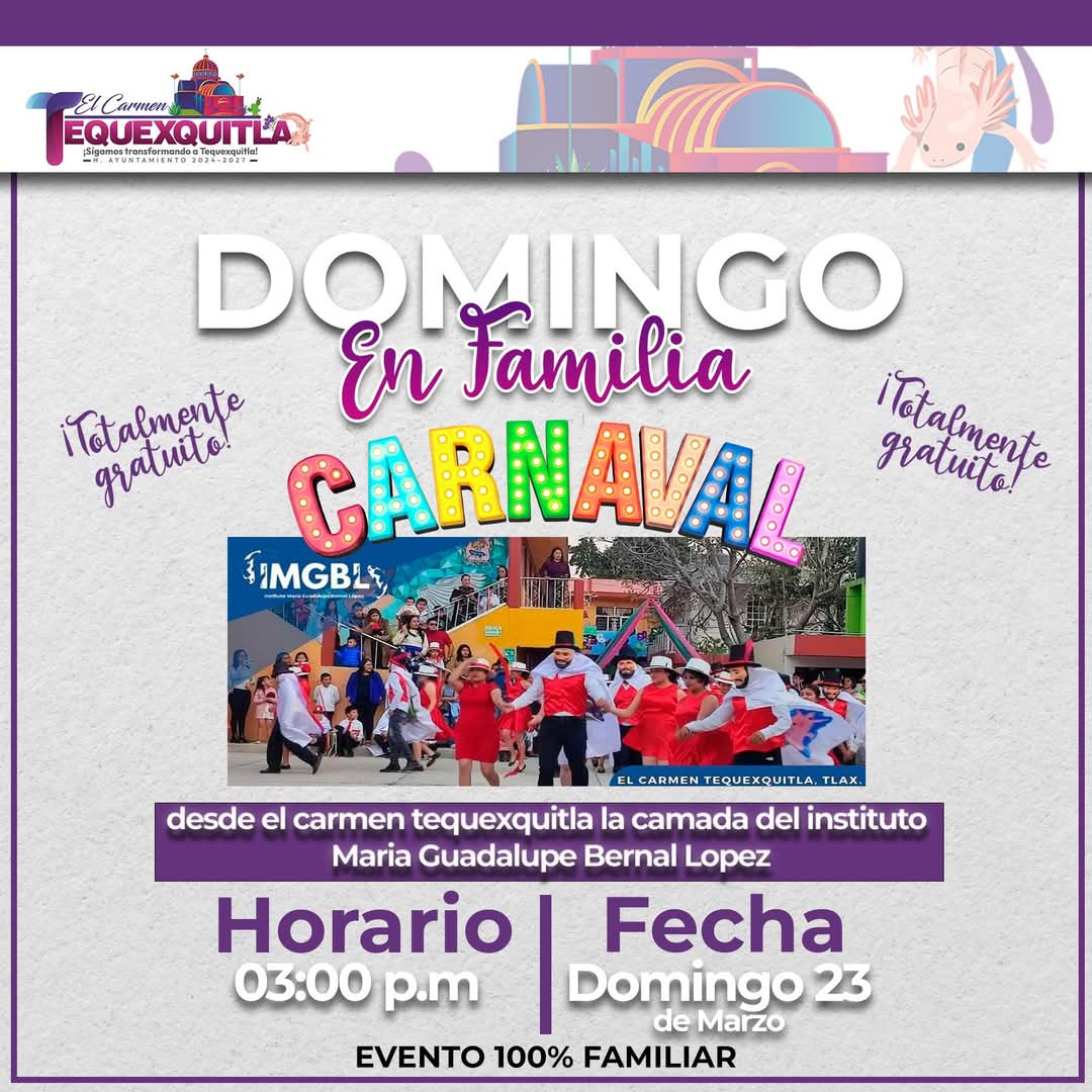 El Gobierno Municipal de El Carmen Tequexquitla te invita a su gran ✨ 👨👩👧 DOMINGO EN FAMILIA 👨👩👧
