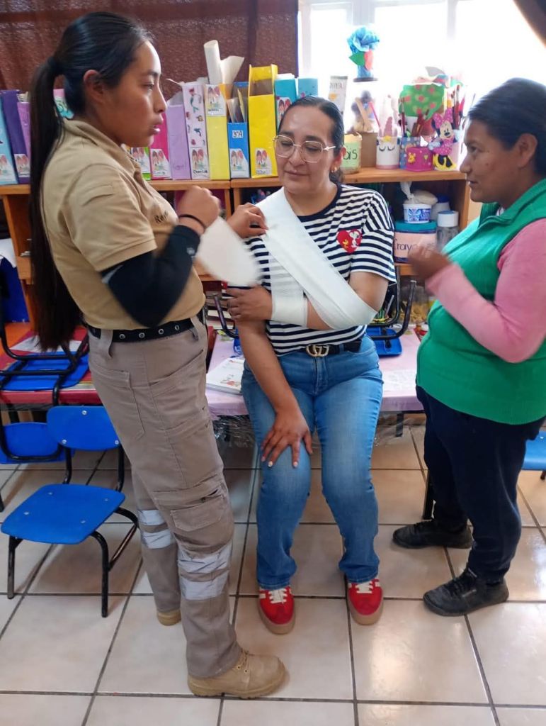 La capacitación fue impartida por Protección Civil Tequexquitla, quienes compartieron sus conocimientos y habilidades para fortalecer la respuesta ante emergencias en el entorno educativo.