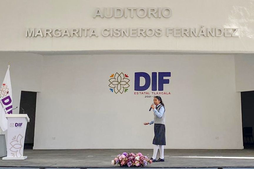 El Sistema Municipal para el Desarrollo Integral de la Familia (SMDIF) Huamantla felicita a la alumna Nancy Cuéllar Leal, de la Telesecundaria “Fernando Montes de Oca” por haber avanzado el pasado viernes 4 de abril a la siguiente etapa estatal del concurso de oratoria “Impulsores de la Transformación”. Con este logro, destaca el nombre de Huamantla a nivel estatal.