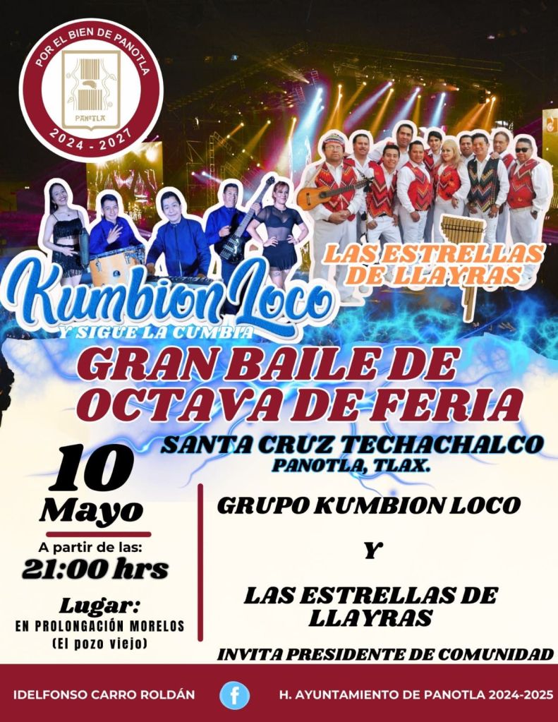El baile se llevará a cabo el próximo viernes 10 de mayo, a partir de las 21:00 horas, en Prolongación Morelos (El Pozo Viejo), en la comunidad de Santa Cruz Techachalco, Panotla, Tlaxcala.
