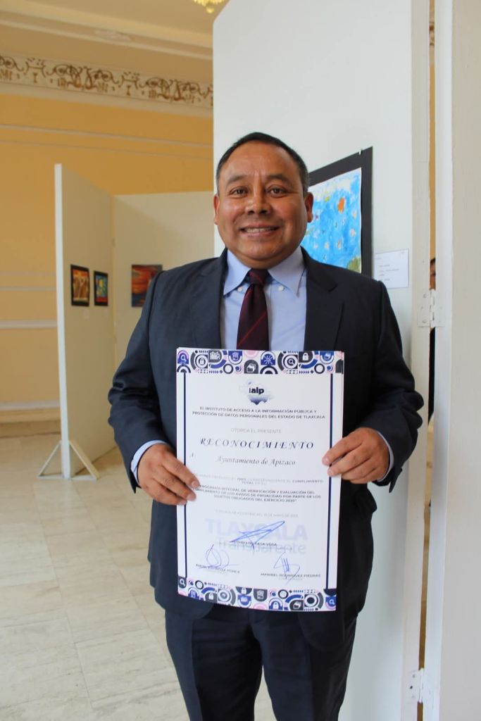 El H. Ayuntamiento de Apizaco asistió a la entrega de reconocimientos por parte del Instituto de Acceso a la Información Pública (IAIP), al haber obtenido el 100% de cumplimiento en el Programa de Verificación Integral y Evaluación del Cumplimiento de los Avisos de Privacidad por parte de los Sujetos Obligados, correspondiente al ejercicio 2025.✔