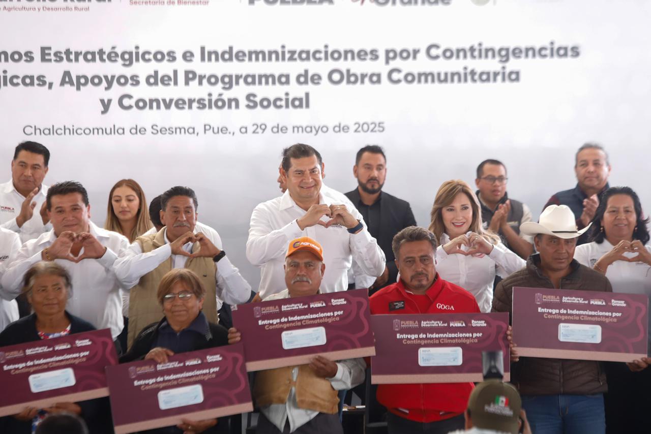Al encabezar la entrega de insumos estratégicos e indemnizaciones por contingencias climatológicas, el mandatario estatal, ante más de 5 mil asistentes, enfatizó que se atienden tanto a jornaleros, como a pequeños productores y ejidatarios, porque en esta administración el campo es una prioridad, en sintonía con el impulso de la soberanía alimentaria en la entidad y de mejorar la calidad de vida de las y los productores poblanos, que promueve el gobierno de la presidenta Claudia Sheinbaum.