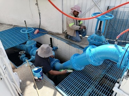 En tanto que en las líneas del sistema de rebombeo se aplicó pintura general para protegerlas y facilitar su identificación.