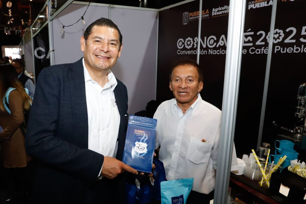 CIUDAD DE PUEBLA, Pue.- Con el compromiso de fortalecer el desarrollo económico de la cafeticultura y las cadenas de valor en la entidad, el gobernador Alejandro Armenta, inauguró la Convención Nacional de Café que por primera vez se desarrolla en la entidad, donde presentó el nacimiento de la marca poblana de Café Soluble “5 de Mayo”, como un producto de Puebla para México y de México para el mundo.