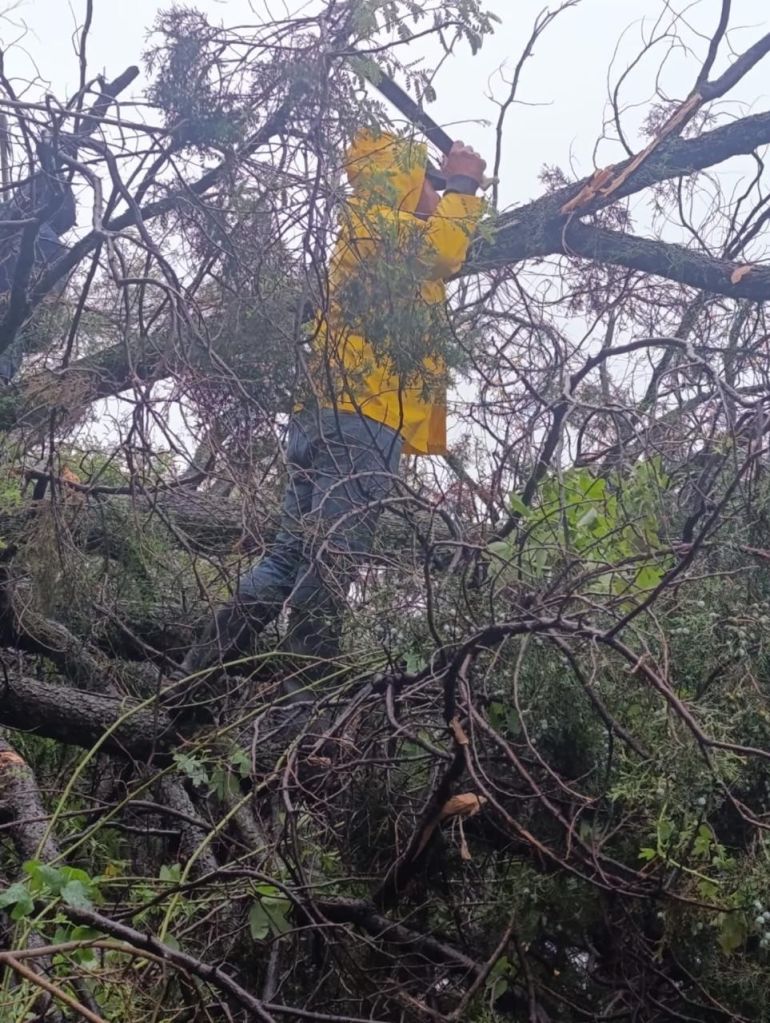 Los cuales realizaron recorridos de verificación de daños, retiro de árboles caídos y desazolve de coladeras en diferentes zonas críticas.