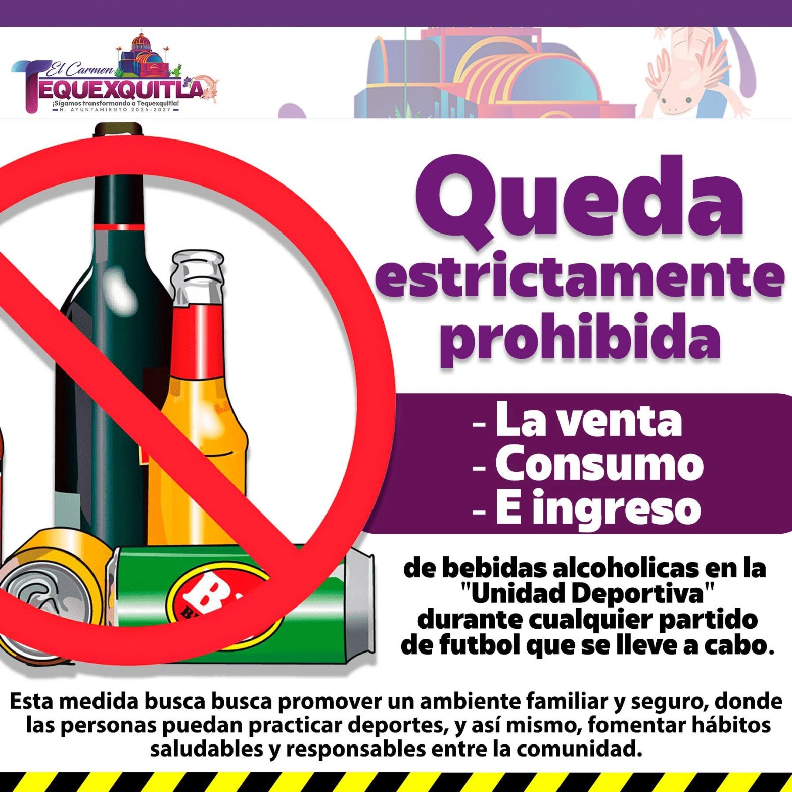 A partir de ahora, queda prohibida la venta, consumo e ingreso de bebidas alcohólicas en nuestra Unidad Deportiva 🏋️♀️🚫.