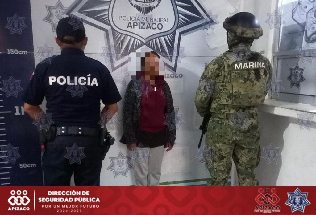 La Dirección de Seguridad Pública, Vialidad y Transporte del municipio de Apizaco, en coordinación con la Secretaría de Marina, informa que durante acciones de patrullajes preventivos se logró la detención de una mujer por su presunta participación en el robo de dinero en efectivo.