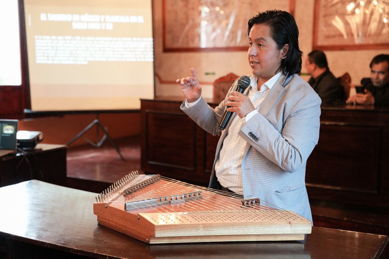 Durante su intervención, Vázquez Herrera compartió con los asistentes una semblanza sobre la historia y evolución del salterio, un instrumento de cuerdas con profundas raíces en la tradición musical de México y, en particular, de nuestro estado.
