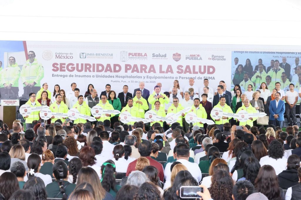 Durante el evento, el gobernador Alejandro Armenta encabezó la entrega de 10 motoambulancias y 220 equipos médicos al personal de SUMA, además de 27 vehículos para la Secretaría de Salud y 30 unidades más para IMSS-Bienestar, junto con 20 unidades móviles cargadas con insumos quirúrgicos y hospitalarios. El mandatario destacó que “la salud representa seguridad y la seguridad comienza por proteger la vida”. Anunció también la meta de homologar los salarios del personal médico con los niveles federales, cumpliendo la instrucción de la presidenta Claudia Sheinbaum, y afirmó que mantendrá la supervisión permanente hasta lograrlo.