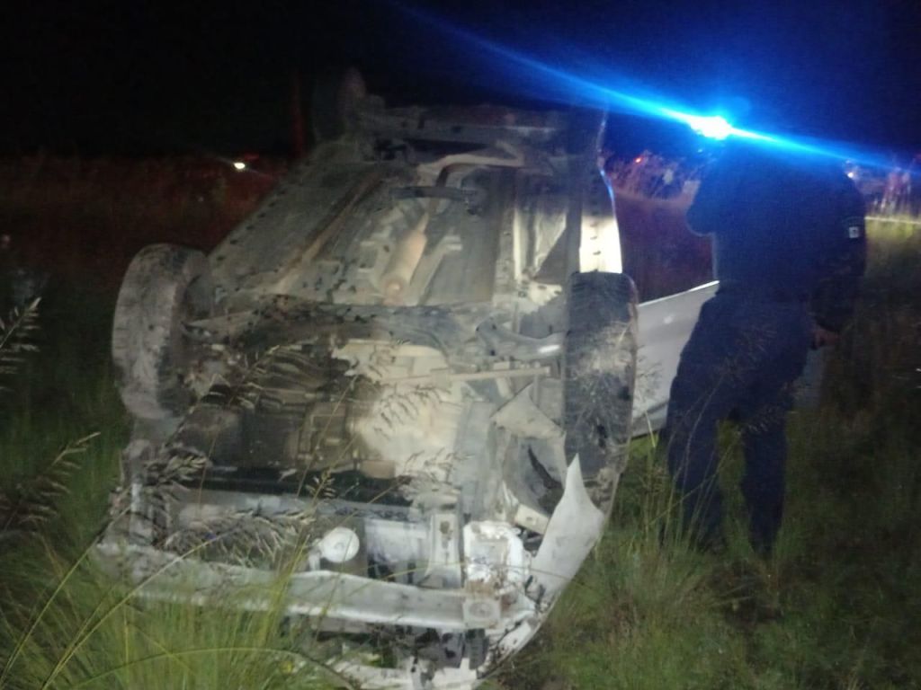 Al arribar al lugar, personal de la Policía Municipal, Protección Civil y paramédicos localizaron un automóvil blanco volcado, el cual se encontraba en completo abandono, sin personas en el interior ni señales inmediatas de ocupantes en la zona.