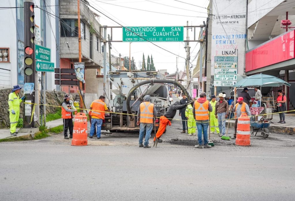 De esta manera, a través del Programa Municipal de Bacheo, se realizaron trabajos en el centro de la ciudad, San Gabriel Cuauhtla y Loma Bonita, donde se registra una alta afluencia vehicular y peatonal.