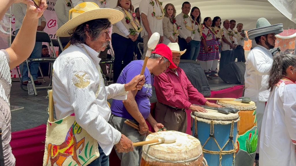 Durante el evento, las y los asistentes disfrutaron de melodías interpretadas con instrumentos ancestrales como el huēhuetl y el teponaxtli, los cuales representan la autenticidad y riqueza cultural que conservan nuestros pueblos originarios. Participaron diez músicos que mantienen viva esta herencia a través de sus interpretaciones llenas de historia y tradición.