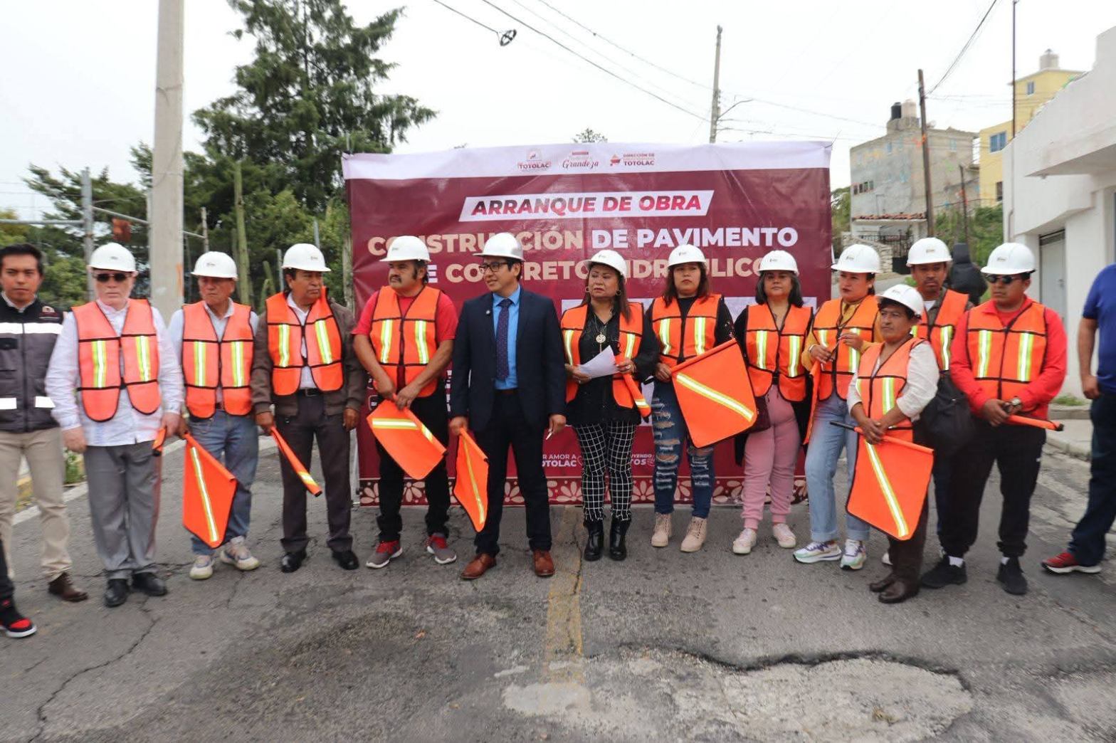 El presidente municipal de Totolac: Benjamín Atonal Conde avanza con hechos, en su gira de inicios de obra, dió el banderazo de inicio a la 𝗽𝗮𝘃𝗶𝗺𝗲𝗻𝘁𝗮𝗰𝗶ó𝗻 𝗰𝗼𝗻 𝗰𝗼𝗻𝗰𝗿𝗲𝘁𝗼 𝗵𝗶𝗱𝗿á𝘂𝗹𝗶𝗰𝗼 de la Calle: Balcón de Maxixcatzin en la comunidad de San Miguel Tlamahuco.