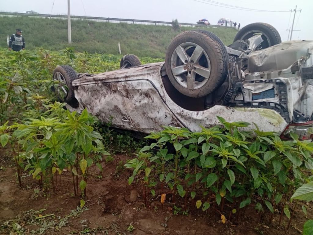 Al llegar al lugar, se confirmó la presencia de un automóvil fuera de la cinta asfáltica, el cual se encontraba volcado sobre terrenos de labor. En el sitio ya se encontraba personal de la Guardia Nacional, a quienes se les brindó apoyo en tareas de abanderamiento y control de vialidad para garantizar la seguridad en la zona.