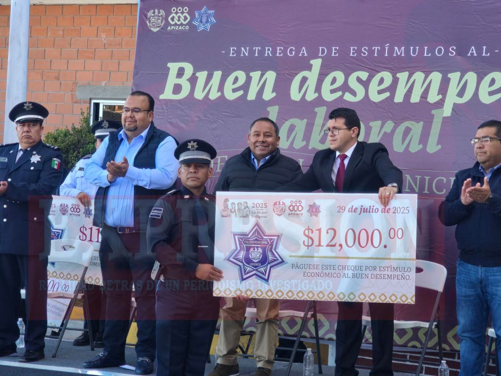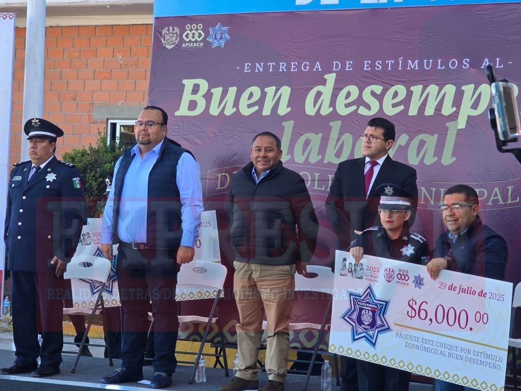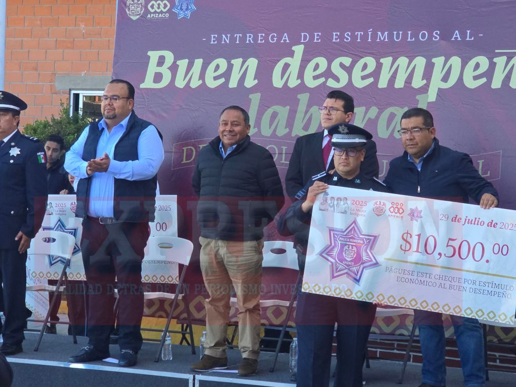 Como parte de la estrategia integral para dignificar la labor policial y fortalecer la seguridad en el municipio, el presidente municipal de Apizaco, Javier Rivera Bonilla, encabezó la entrega de estímulos económicos a 50 elementos de la Policía Municipal por su buen desempeño laboral.