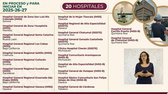 Detalló que, además de Tlaxcala, se construirán hospitales en Sonora, Morelos, Nuevo León, Baja California, Coahuila, Sinaloa, Zacatecas, Baja California, y Oaxaca, bajo el modelo del IMSS, entre otros.