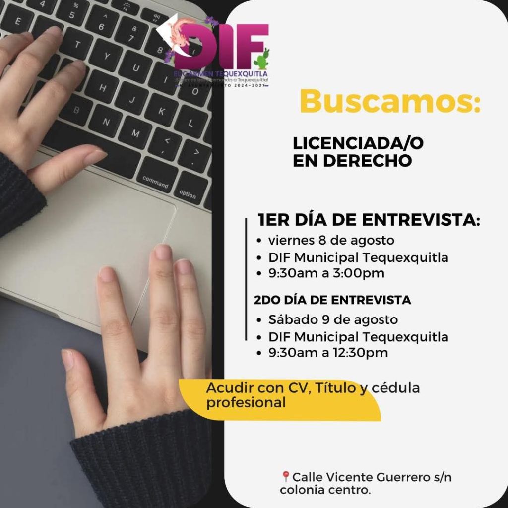 Buscas trabajó? El SMDIF de Tequexquitla solicita el siguiente perfil: LIC en Derecho.