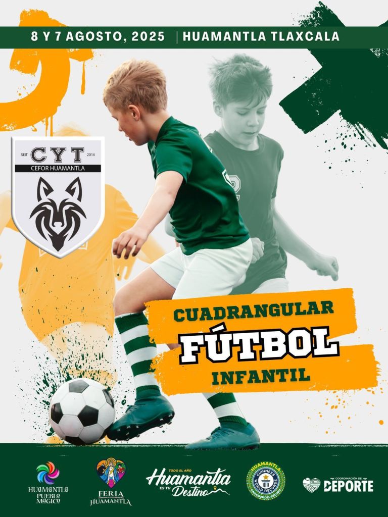 Como parte de las actividades deportivas de la Feria Huamantla 2025, los días 7 y 8 de agosto se llevará a cabo el Cuadrangular Infantil de Fútbol, un evento diseñado para fomentar el desarrollo físico, la convivencia y la sana competencia entre las nuevas generaciones.