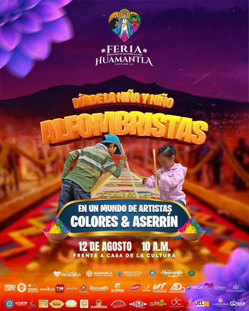 Como parte de las actividades culturales de la Feria Internacional del Arte Efímero y la Dalia Huamantla 2025, el próximo lunes 12 de agosto se celebrará el tradicional Día de la Niña y el Niño Alfombristas, un espacio donde la creatividad infantil y el amor por las tradiciones se hacen presentes.