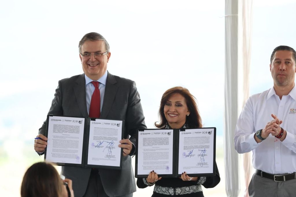 El titular de la Secretaría de Economía (SE), Marcelo Ebrard, felicitó a la mandataria estatal por lograr que la entidad sea primer lugar nacional en avance de construcción de los nuevos Polos de Desarrollo, y que incluso haya comprometido el 80 por ciento de la inversión en este clúster industrial, por lo que confió en que el polo de Huamantla “será el parque número uno de la República”.