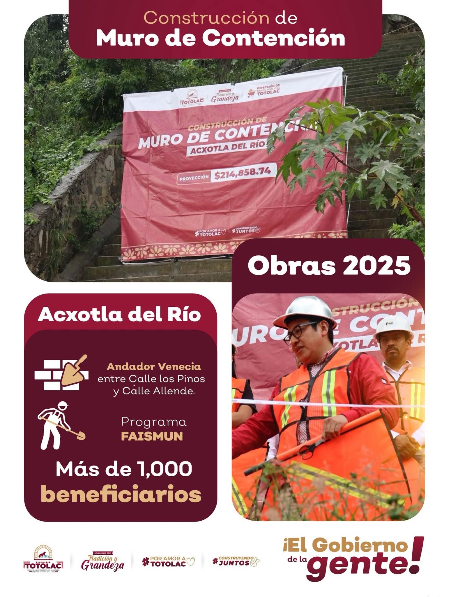 Se construye muro de contención en Acxotla del Río en Andador Venecia entre calle los Pinos y calle Allende, serán mil beneficiarios con esta obra, que el alcalde de Totolac Benjamín Atonal Conde dio banderazo de inicio.
