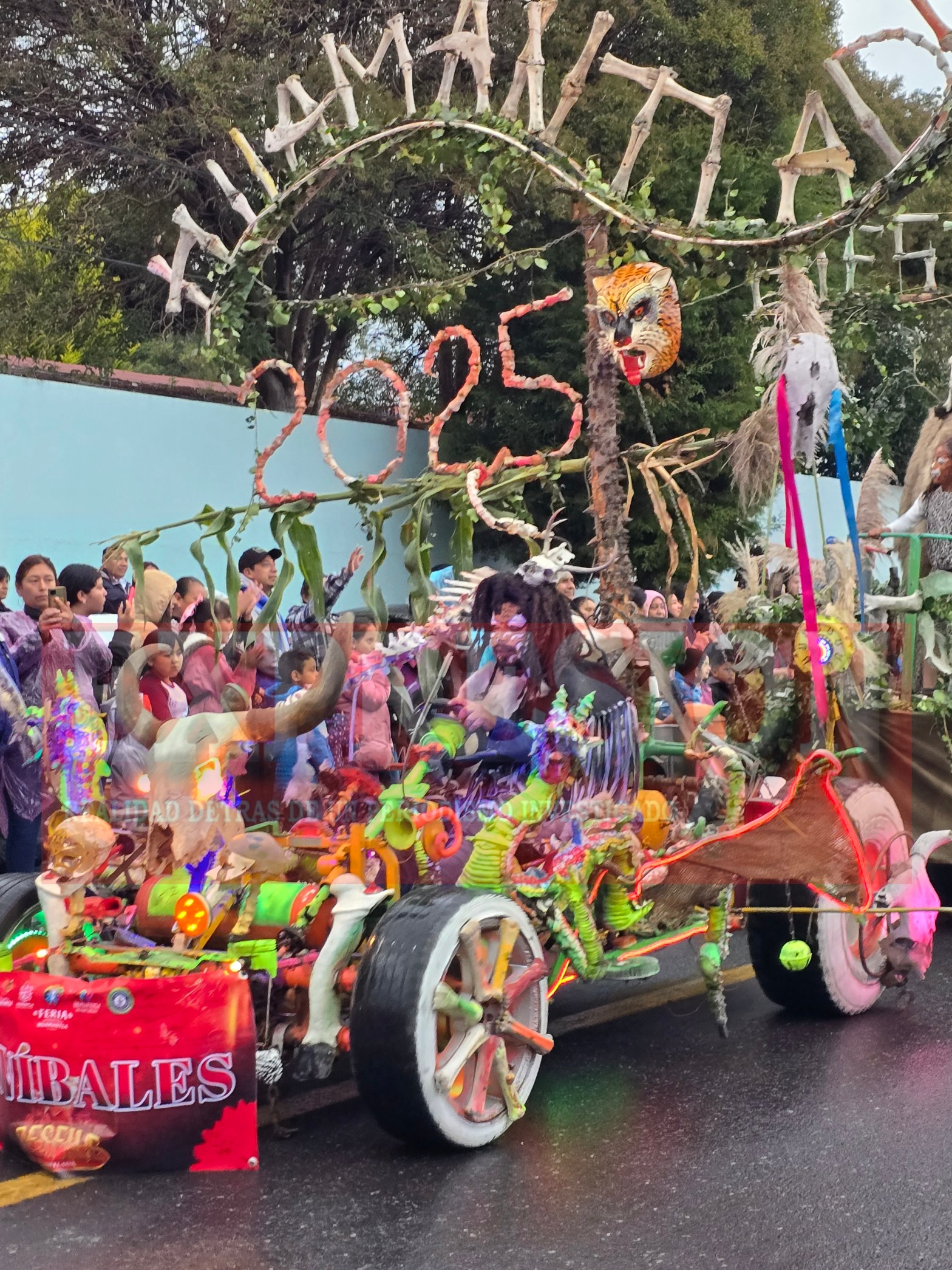 Participaron bandas, mariachis, bastóneras, comparsas, camadas de huehues, botargas, reinas, grupos musicales, zanqueros, ballet folklórico, marching bands, la Reina de la Feria del Arte Efímero y la Dalia Araceli 1.