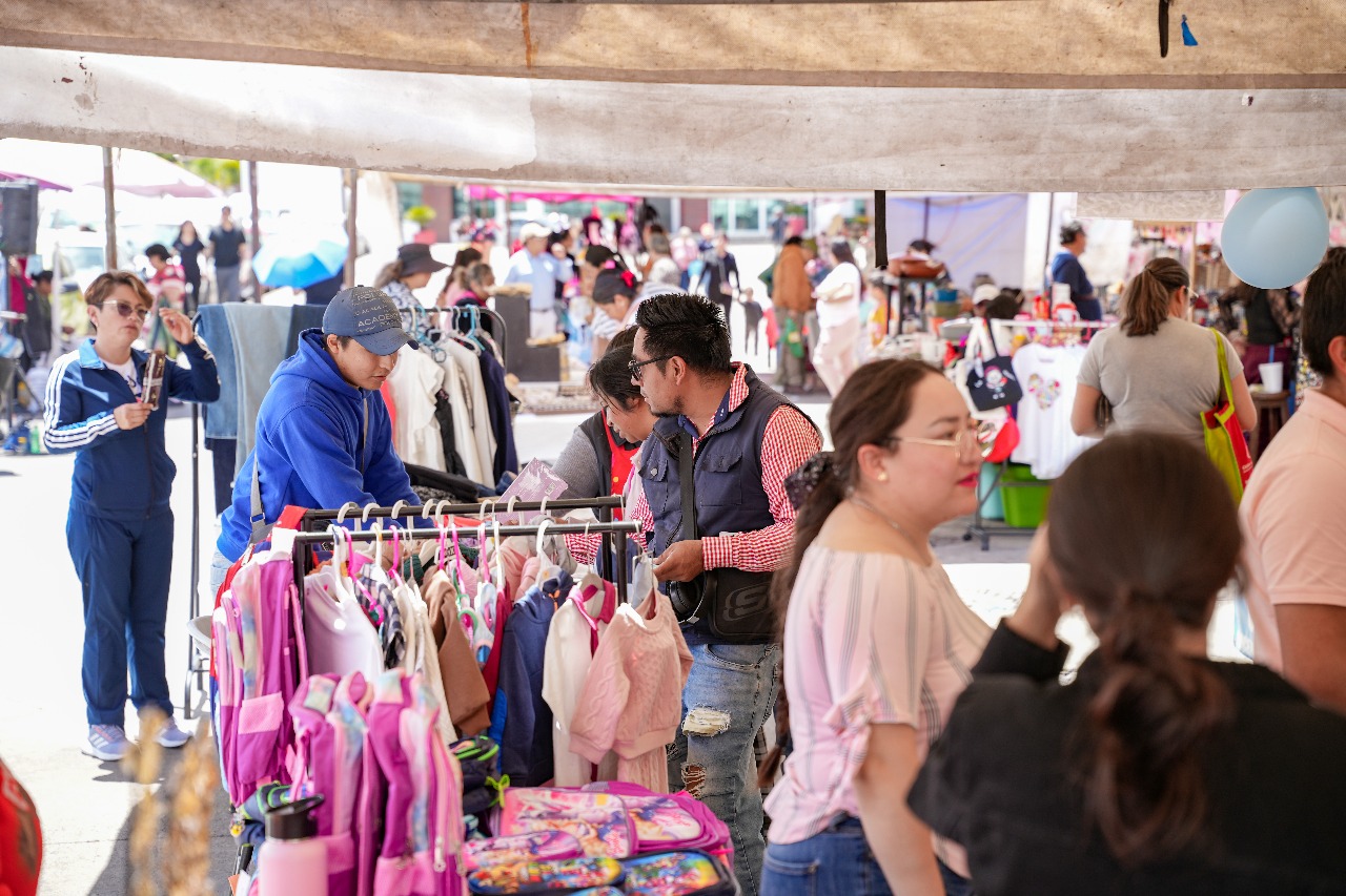 Durante esta jornada, mujeres y hombres pusieron a la venta diversos artículos, como bisutería, ropa, artesanías y alimentos, entre otros artículos, como una forma de fortalecer su economía.
