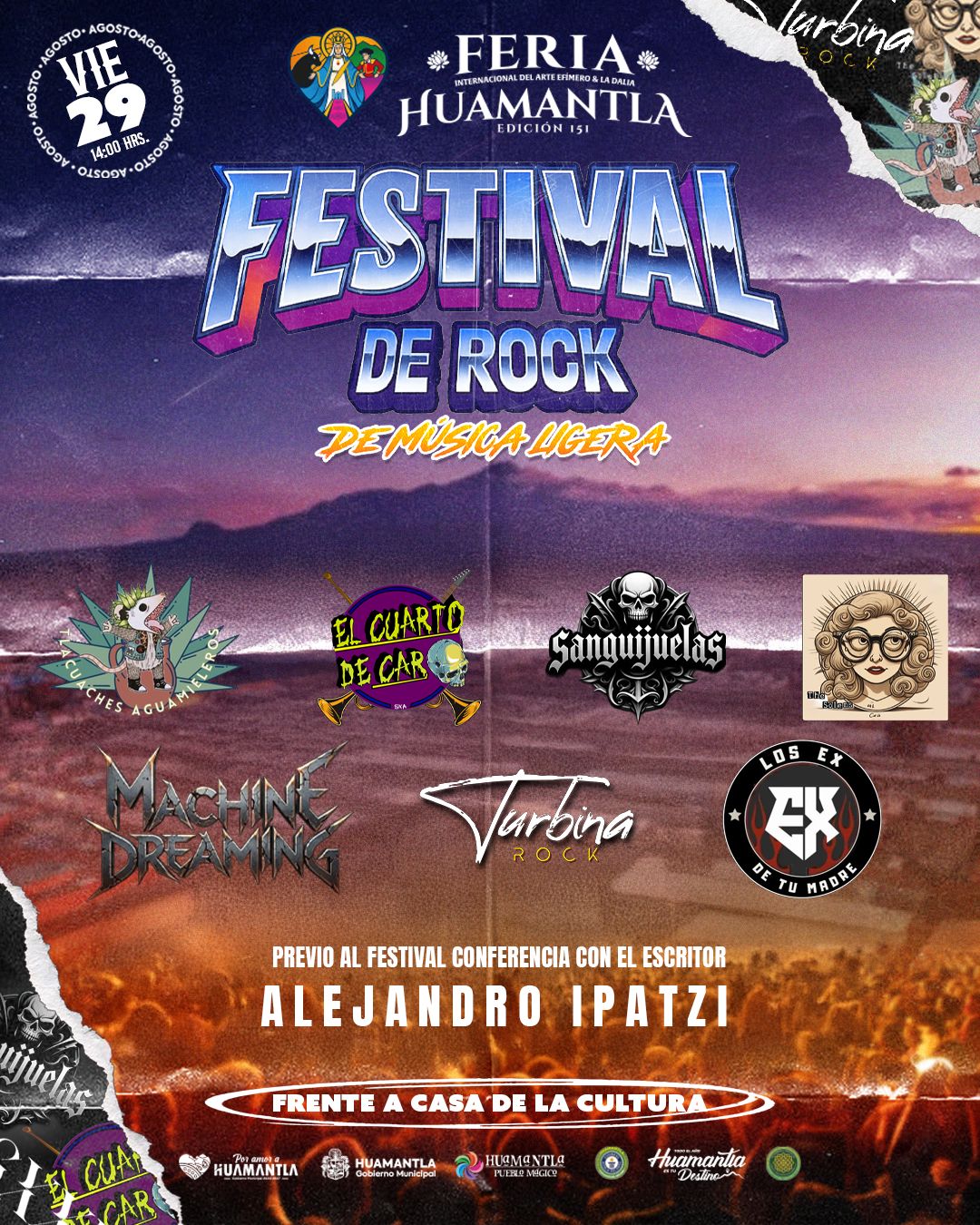 Huamantla, Tlaxcala. – La Feria Internacional del Arte Efímero y la Dalia 2025 continúa ofreciendo eventos para todos los gustos, y este viernes 29 de agosto se vivirá una tarde especial con la realización del Festival de Rock “De Música Ligera”, en el Parque Juárez, frente a la Casa de la Cultura.