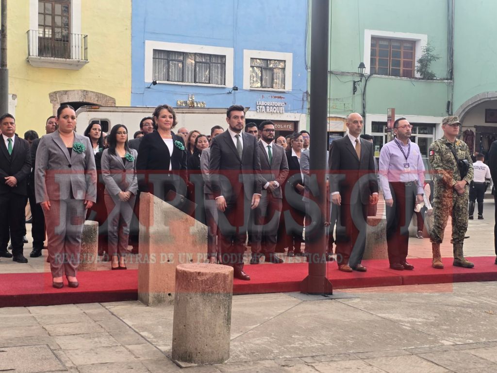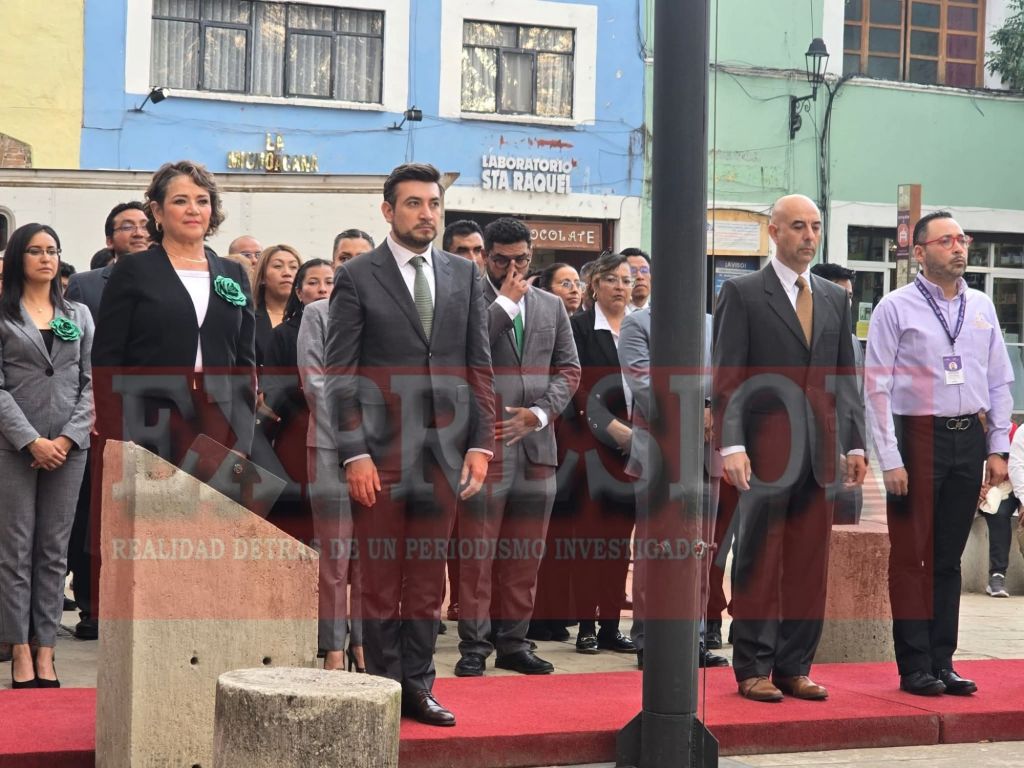 El presidente de Huamantla, Salvador Santos Cedillo, acompañado de integrantes de su administración, acudió al Palacio de Gobierno del Estado para participar en el solemne arrio de bandera, una ceremonia que simboliza el respeto y la unión en torno a los valores patrios.