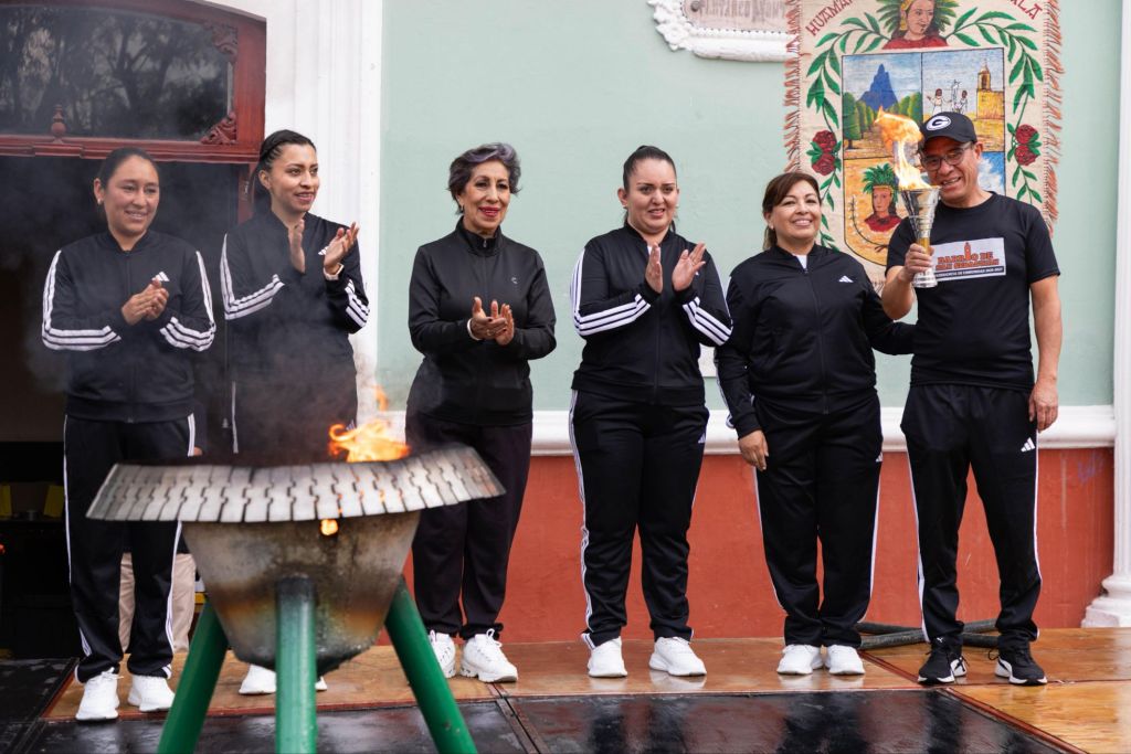 - En representación del alcalde Salvador Santos Cedillo, la síndico municipal, Brizeyla Iveet Rodríguez López, encabezó la entrega del fuego patrio a presidentes de comunidad