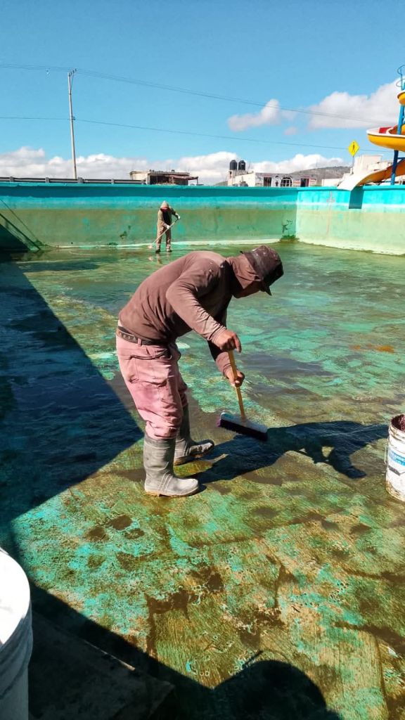 🏊♂️✨ Con el compromiso de mantener en óptimas condiciones los espacios públicos, cada semana se lleva a cabo la limpieza de la alberca de Totolcingo.