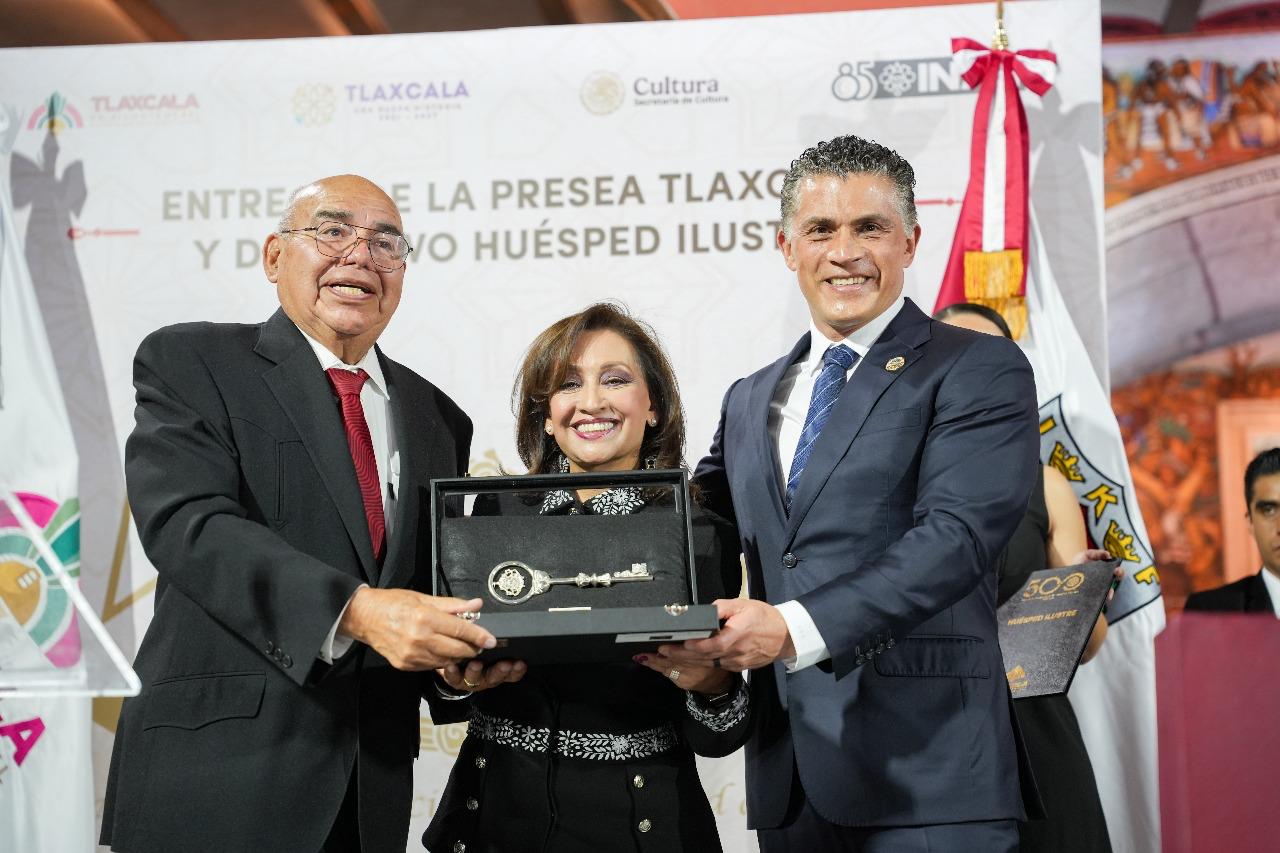“La Presea Tlaxcala es un símbolo que nos recuerda que nuestra tierra fue y sigue siendo raíz y voz. Este reconocimiento honra a Xicohténcatl ‘El Viejo’ y a su hijo, emblema de dignidad. Ellos representan el espíritu que nos define: la capacidad de unirnos para vencer cualquier obstáculo y la fuerza de alzar la voz para que nunca se nos borre de la historia. La presea pertenece a todas y todos los tlaxcaltecas; es patrimonio vivo de nuestra nación”, subrayó.