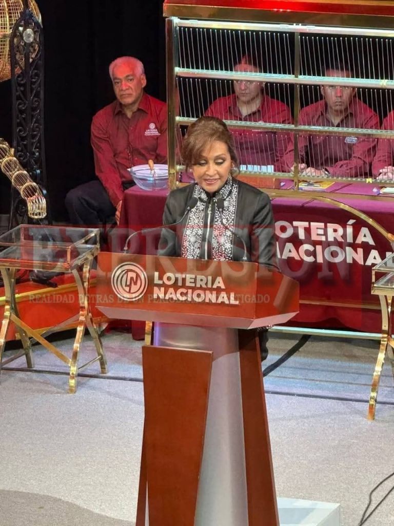 Acompañaron a Cuéllar la secretaria de Turismo de México,Josefina Rodríguez Zamora y la directora general de la Lotería Nacional, Olivia Salomón.