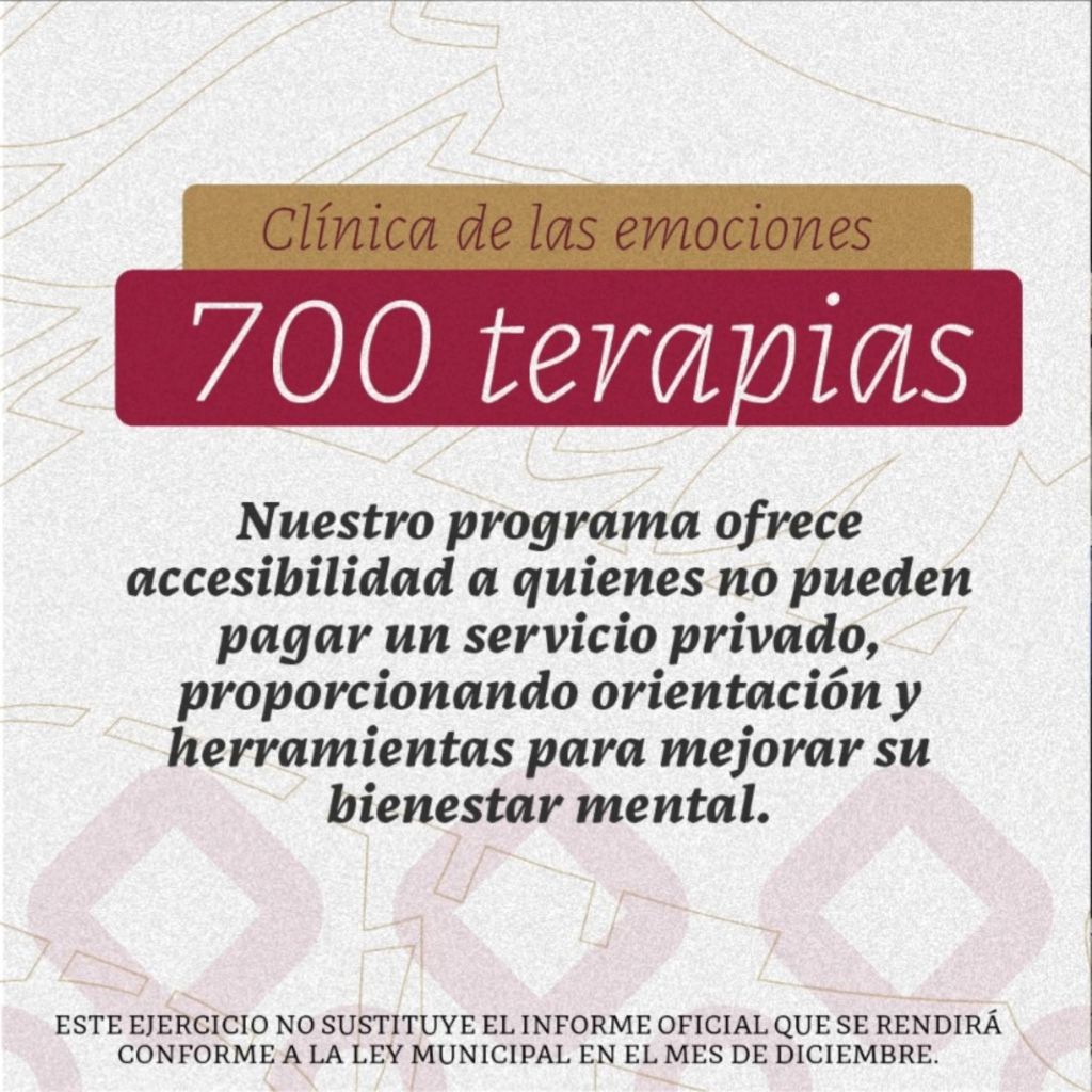 Con la Clínica de las Emociones, el DIF Municipal otorgó 700 terapias, garantizando atención accesible para quienes no pueden pagar un servicio privado.
