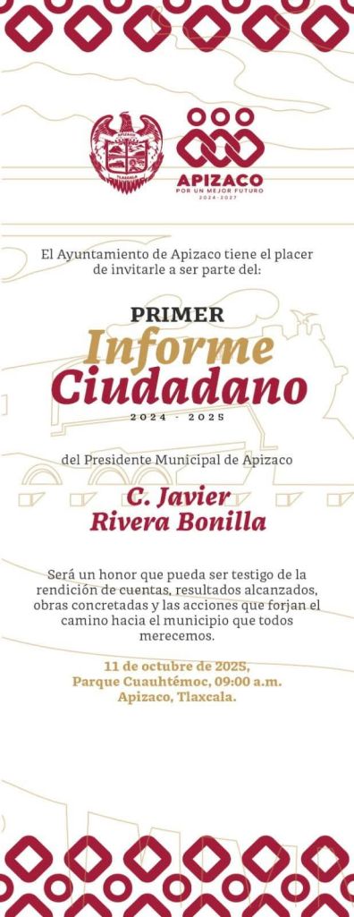 📣 El Ayuntamiento de Apizaco te invita a ser parte del Primer Informe Ciudadano 2024-2025.