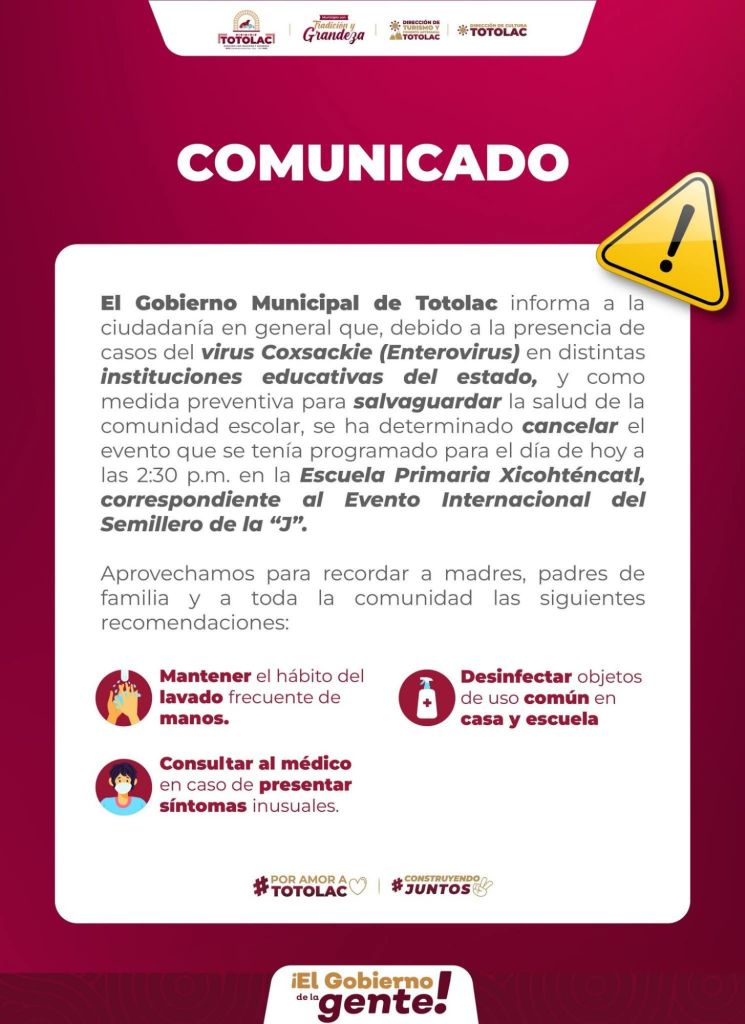 El Gobierno Municipal de Totolac 24-27 informa la 𝗰𝗮𝗻𝗰𝗲𝗹𝗮𝗰𝗶ó𝗻 𝗱𝗲 𝗹𝗮 𝗽𝗿𝗲𝘀𝗲𝗻𝘁𝗮𝗰𝗶ó𝗻 𝗱𝗲𝗹 «𝗙𝗲𝘀𝘁𝗶𝘃𝗮𝗹 𝗜𝗻𝘁𝗲𝗿𝗻𝗮𝗰𝗶𝗼𝗻𝗮𝗹 𝗱𝗲 𝗹𝗮 𝗝» programada para el día de hoy en la Escuela Primaria Xicohténcatl.