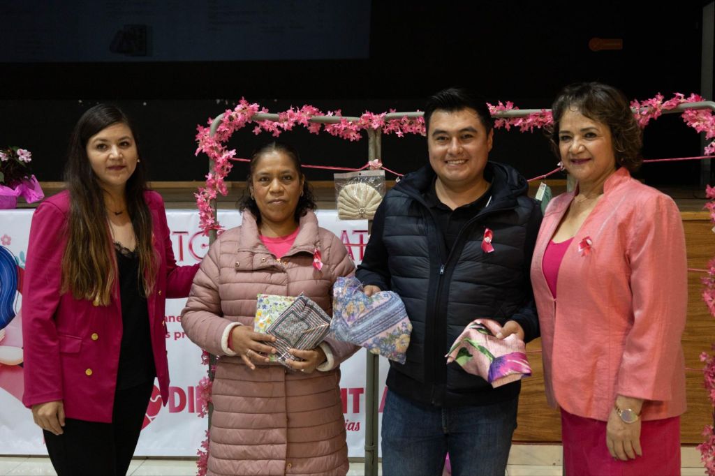La jornada concluyó con la actividad “Tócate para que no te toque”, impulsada por personal de la Unidad Médica Familiar No. 20 del IMSS, en la que se brindó información práctica sobre autoexploración mamaria. Además, se realizó la emotiva dinámica “Huellas de vida”, donde las y los asistentes plasmaron su huella rosa en un lienzo, simbolizando la unidad, fortaleza y esperanza en la lucha contra el cáncer de mama.