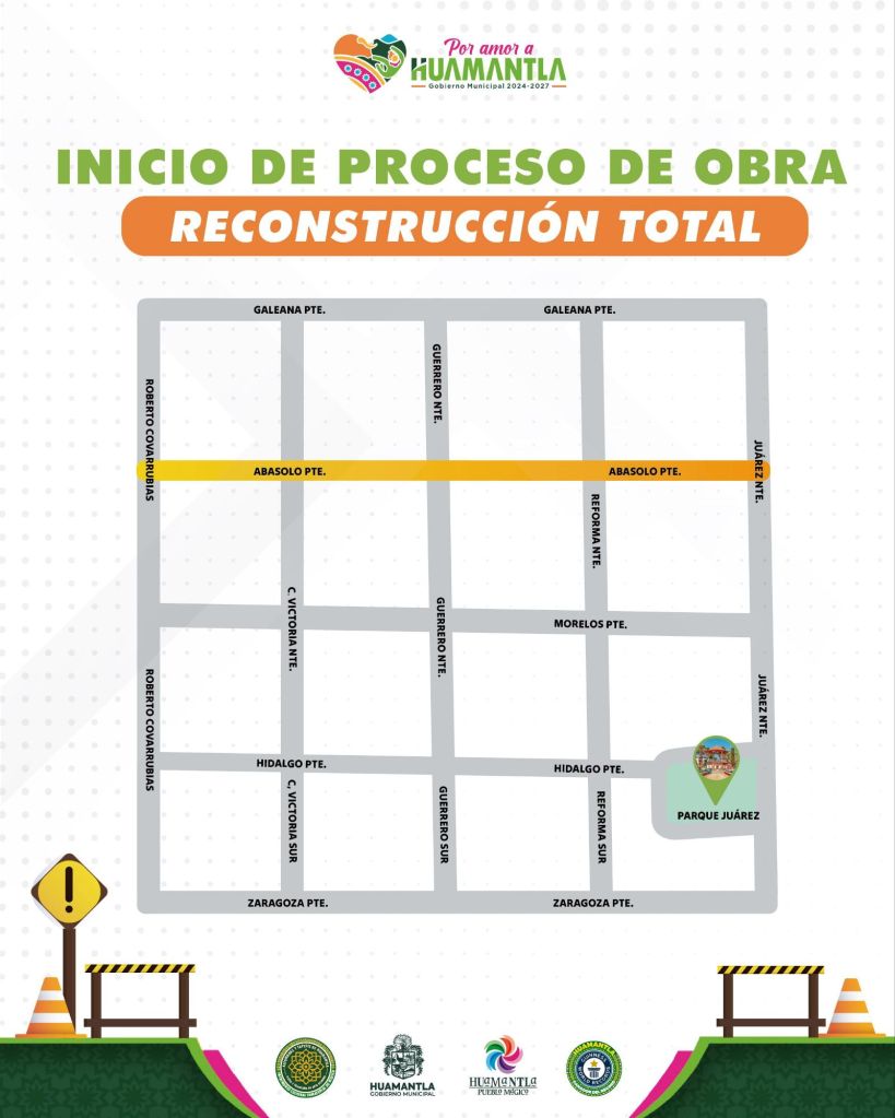 Huamantla, Tlax., a 20 de octubre de 2025.– El H. Ayuntamiento de Huamantla, encabezado por el presidente Salvador Santos Cedillo, informa que a partir de este martes 21 de octubre darán inicio los trabajos de reconstrucción de la calle Abasolo, como parte del programa de mejoramiento urbano impulsado por la administración municipal.