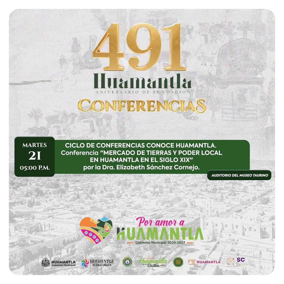 En el marco de las actividades conmemorativas por el 491 aniversario de la fundación de Huamantla, el Gobierno Municipal que preside Juan Salvador Santos Cedillo, a través de la Dirección de Turismo, Cultura y Desarrollo Taurino, invita a la ciudadanía a participar en el ciclo de conferencias “Conoce Huamantla”, que busca acercar a la población a la historia, tradiciones y procesos sociales que han dado forma a nuestro municipio.