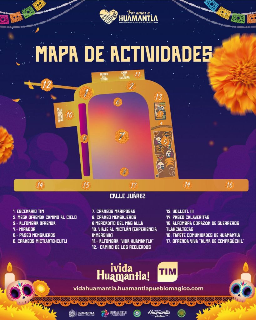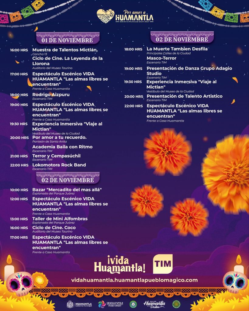 “Vida Huamantla es un espacio donde celebramos lo que somos, lo que recordamos y lo que permanece en nuestros corazones. Es una invitación a caminar nuestras calles, a sentir el aroma del cempasúchil y a honrar con respeto a quienes nos siguen cuidando desde donde estén”, expresó el presidente municipal, Salvador Santos Cedillo.