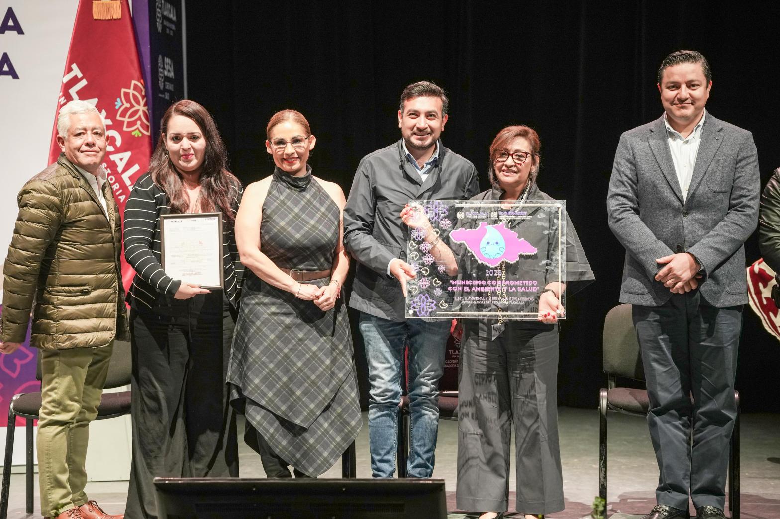Acompañado por la síndico municipal, Brizeyla Iveet Rodríguez López, el alcalde participó en la Primera Entrega de Certificados a Pozos de Agua, acto encabezado por la mandataria estatal en el Teatro Xicohténcatl, junto con autoridades de la Secretaría de Salud (SESA), Comisión Estatal para la Protección contra Riesgos Sanitarios (COEPRIST) y Comisión Nacional del Agua (CONAGUA).