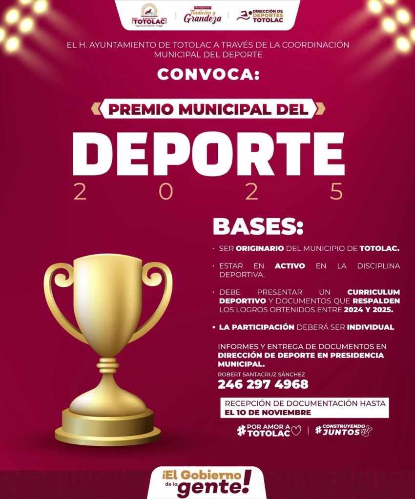 El Gobierno Municipal de Totolac 24-27 a través de la Dirección de Deportes que encabeza 𝗥𝗼𝗯𝗲𝗿𝘁 𝗦𝗮𝗻𝘁𝗮𝗰𝗿𝘂𝘇 𝗦á𝗻𝗰𝗵𝗲𝘇 convoca a las y los deportistas del municipio a participar.