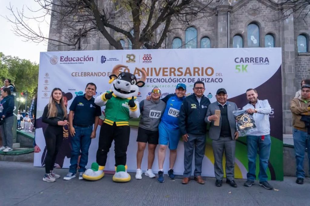 El presidente municipal Javier Rivera Bonilla encabezó la ceremonia de la Carrera de 5 Kilómetros conmemorativa por el 50 aniversario del Instituto Tecnológico de Apizaco, donde extendió a través de sus autoridades, un afectuoso saludo a la doctora Yesica Imelda Saavedra Benítez, directora de la institución, y reconoció la trayectoria del plantel como un pilar en la formación de profesionistas comprometidos con el desarrollo de la región.