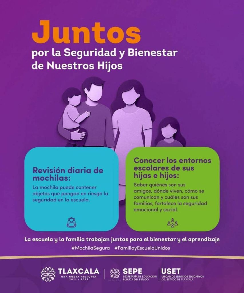 La Secretaría de Educación Pública del Estado ha iniciado una campaña para que las autoridades educativas, madres, padres de familia y tutores, realicen la revisión de mochilas sin previo aviso en cada institución educativa, en compañía de seguridad publica municipal.